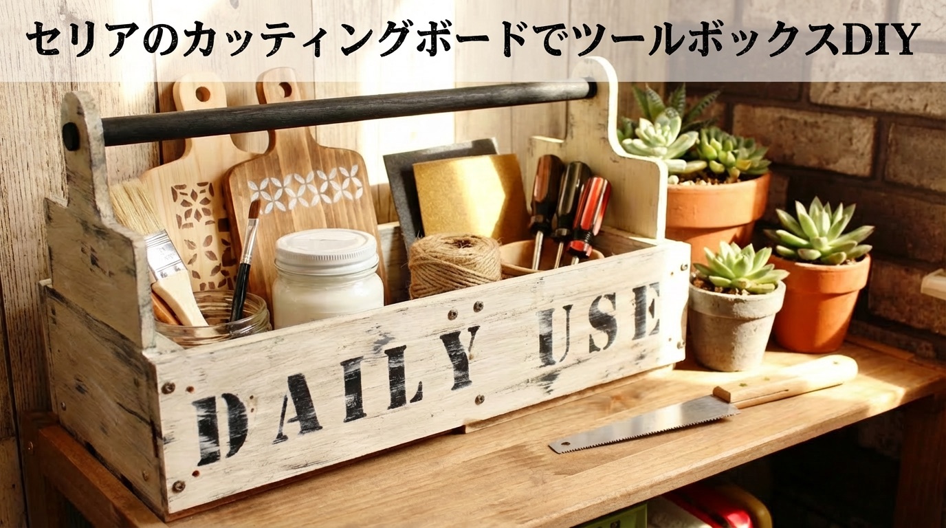 今回のDIYはセリアの木箱と木材でツールボックスを作ります。